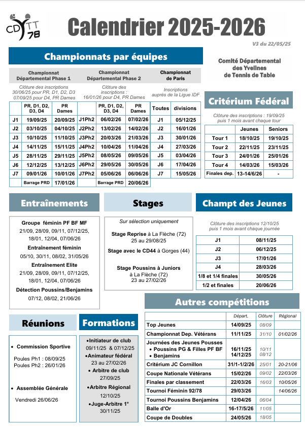 Calendrier 2025-2026
